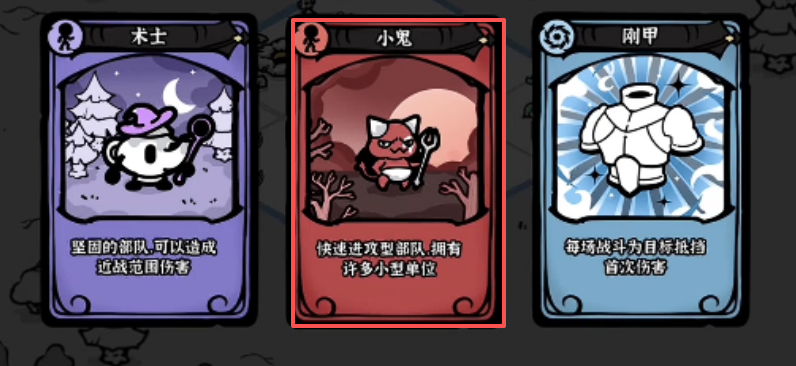 还有接下来用到的小鬼这张牌,小鬼这张职业牌其实在这里也是属于一类有速度加成的卡牌,在其中只要用到快攻的情况下,小鬼的强度就会体现出来,而且目前自身的品质也比较高,是一张红卡,在其中如果拥有许多小型单位的同时,那么小鬼他的能力效果还会有更多的上限可以提升起来。接下来还有雇佣兵,雇佣兵这张卡其实是大家每拥有15个金币的时候,可以额外在这里招募到一个雇佣兵进行输出加成,所以在这里雇佣兵一般情况下跟大家当前场上的经济也有关系,经济比较高的情况下,他要召唤出来一队雇佣兵进行作战,强度也是比较高的。