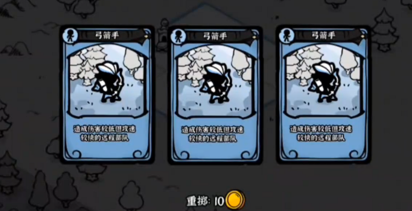 首先第儿个给大家介绍的就是弓箭手这类职业卡牌,在造成的伤害数值上面是比较低的,因为是因为是一类蓝色品质的卡牌,但是攻速相对来说是要比近战角色要快一些,而且可以适应各种远程作战,如果一次出现好几张的话,那么大家就可以用弓箭手来组成一个远程部队。第二个为大家介绍的是士兵,士兵也是前期刷新出来概率比较大的一类蓝色职业卡牌,其中士兵的属性其实就是非常均衡的,而且这里带来的近战效果会比其他的功能效果更强势一些,去打一些基础的关卡作战还是没有问题的,士兵目前也是大家用的比较多的一类职业卡牌。