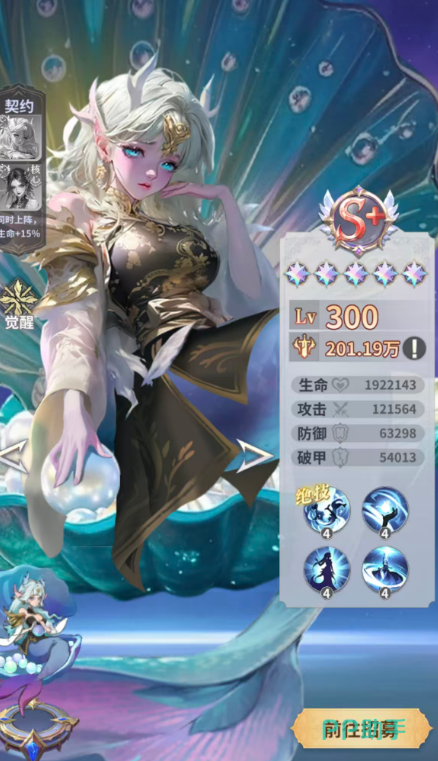 最后大家还可以玩儿一个神姬角色是椒图,椒图在这里的品质也是非常高,自身可以带来一个分担的链接效果,让我方全体的角色都链接在一起长达5秒,并且单个目标受到的伤害,此时就会有全体的链接单位均摊,并且此时被链接的单位在伤害前面当中也会提高15%的数值,主动技能效果当中还会驱散我方单位身上的一个负面效果,并且恢复目标身上8%最大生命数值的效果,如果她庇佑着整个氏族的情况下,那么战斗当中的生命数值提高也有10%的加成,防御数值上面同样是这个百分比的加成,大家要注意这里椒图在战斗一开始脱离了虚无状态之后,每隔6秒的时间,就会重置一个万川归渊的冷却效果在其中,自己只要转化成虚无状态,就可以免疫对面带来的物理伤害,所以在这里她的抗性也是非常高的。