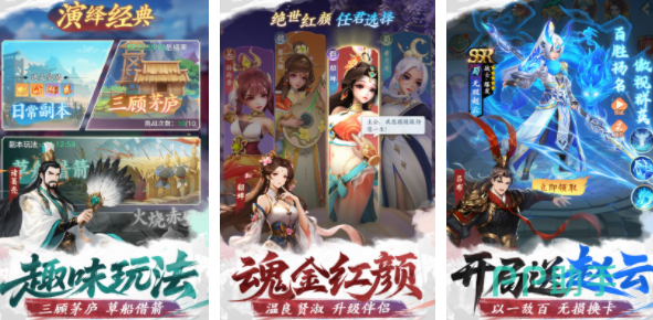 三国类型的游戏一直非常受欢迎,三国大冒险主打即时卡牌战斗玩法,大量的卡牌武将等待玩家收集培养,游戏里可以先去招募武将,利用不同的武将特色组建成阵容,接着参与到各大经典战役中,获取资源之后可以继续去培养武将,让自身阵营拥有更强能力,战斗之外,玩家可以在副本过程中体验更多趣味玩法,通过沿袭兵书和宝物镶嵌,继续提升武将能力,喜欢及时卡牌对战的玩家不要错过。