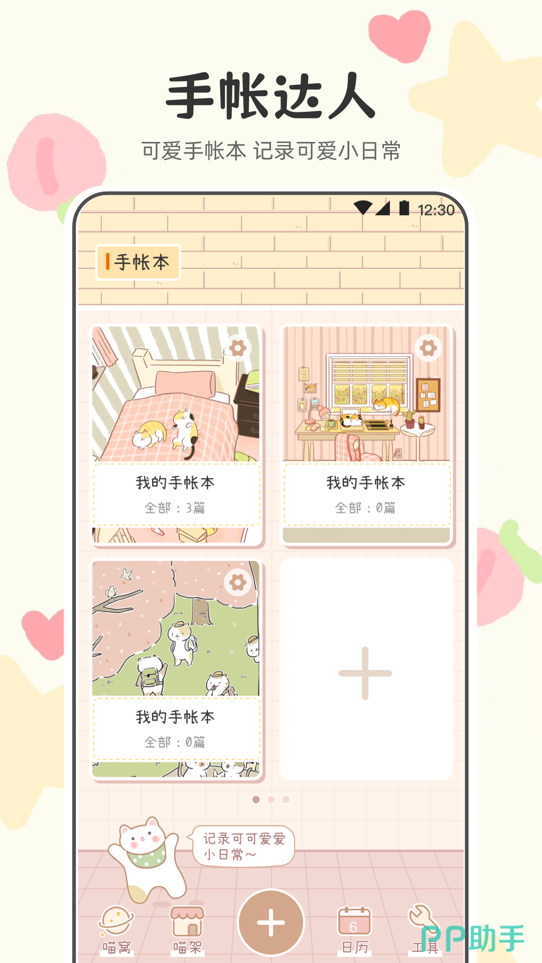 软件的画风软乎乎的太可爱了,它是以猫咪为主题的,里面有超多专属的猫咪贴纸和装饰元素,不用专业绘画技能,随便拼一拼就能做出精致的手记页面。每次写完手记,看着软乎乎的页面,都会有满满的成就感。