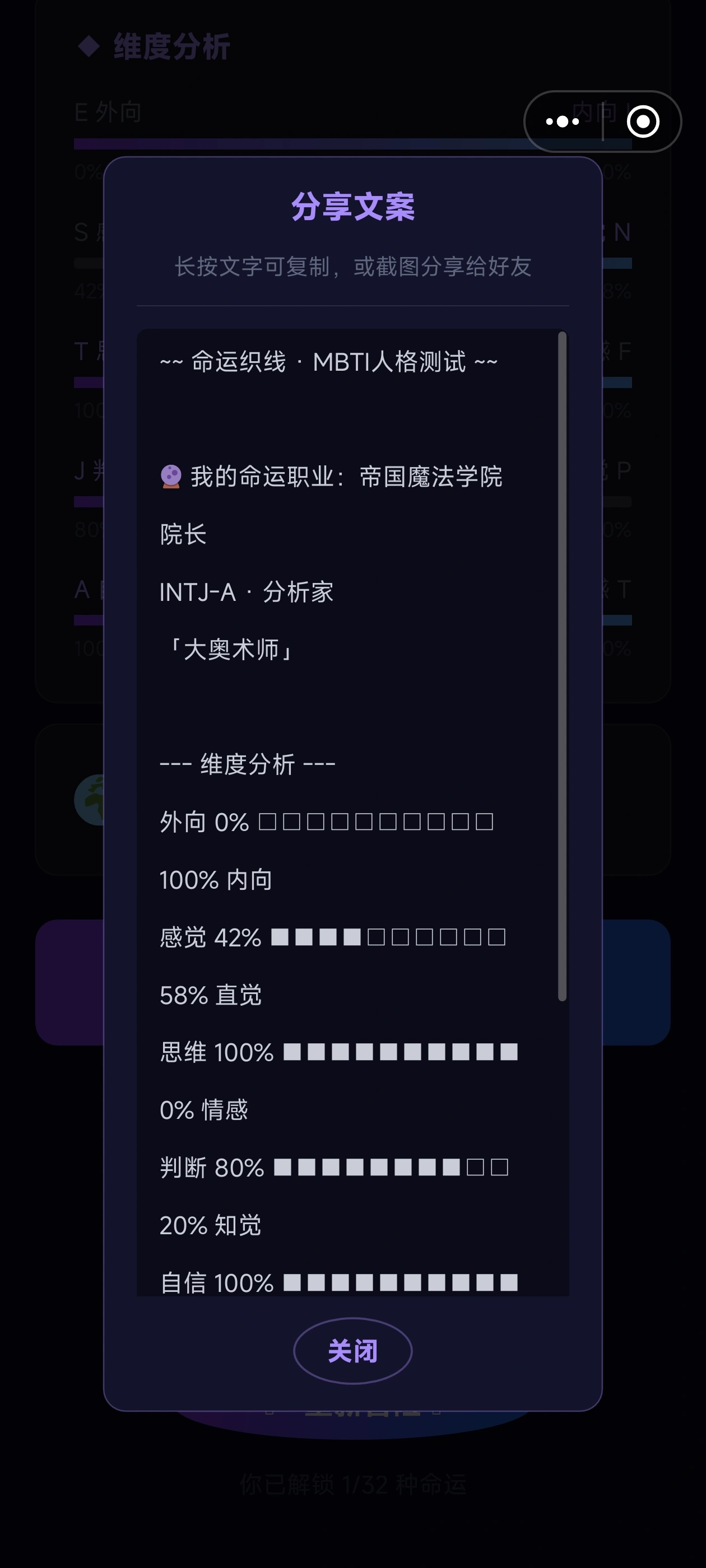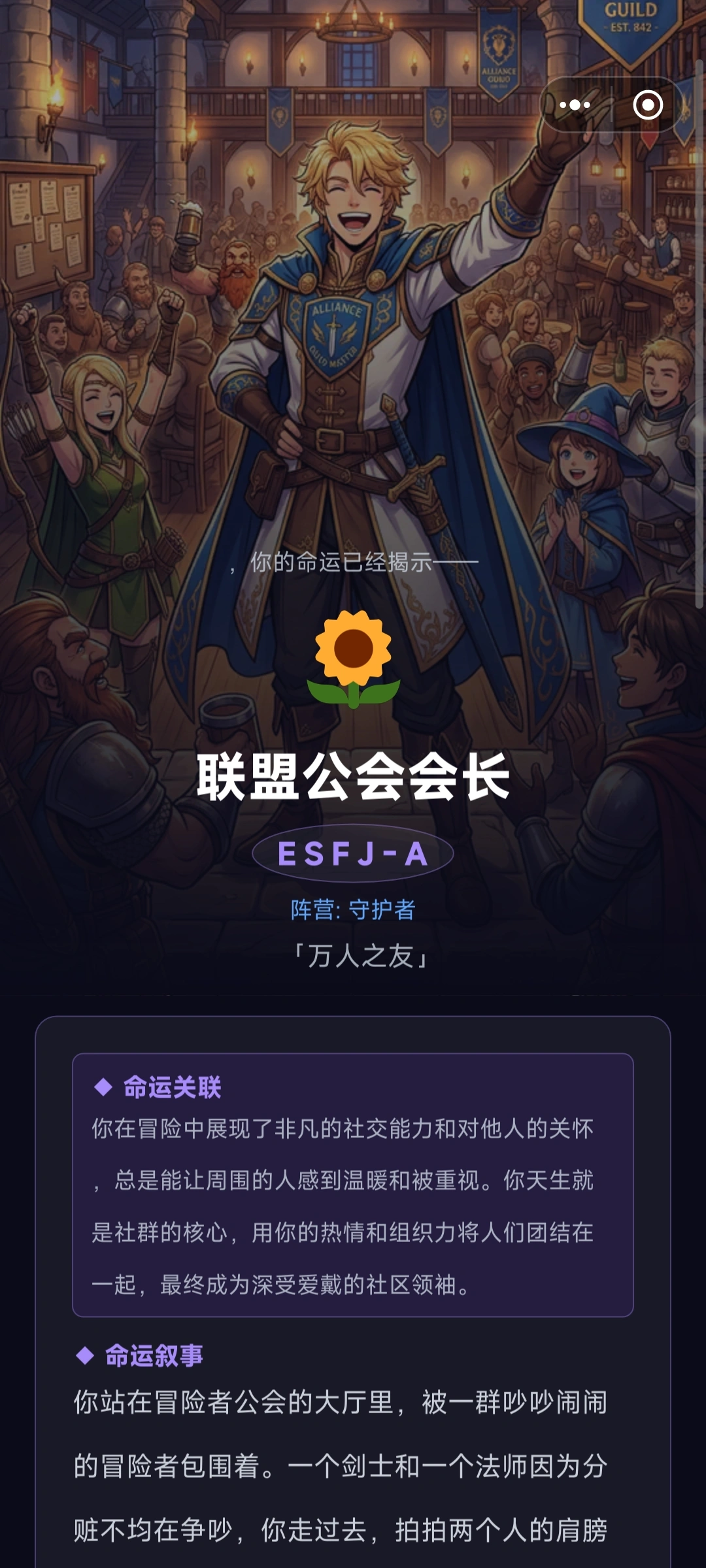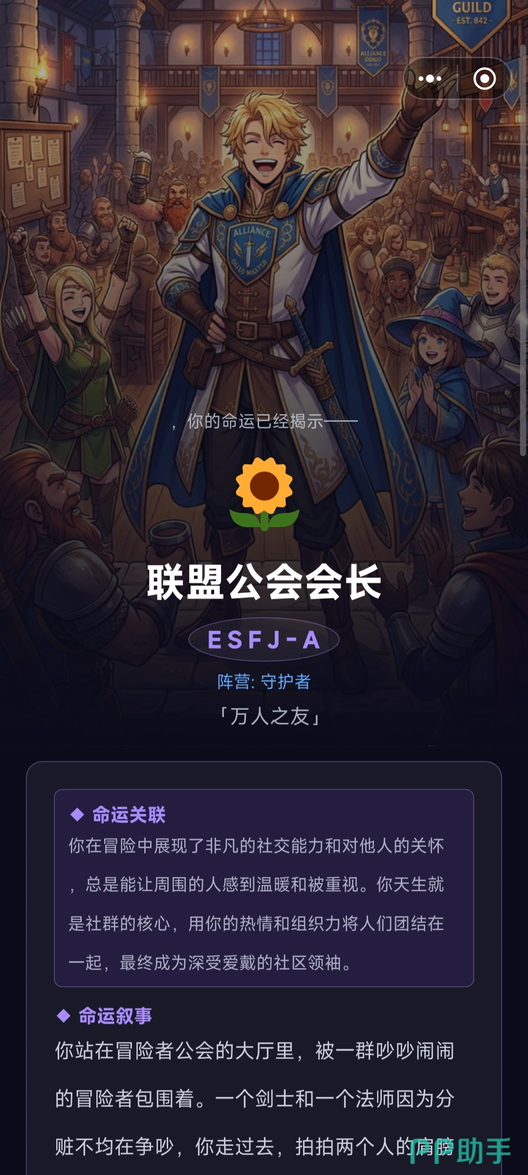 说实话,这款以MBTI人格模型为内核的文字冒险游戏《命运织线MBTI性格测试》,近期在社交平台和玩家社群中持续升温。不少用户反馈,自己连续追踪官方消息近半个月,连更新日志都逐条比对,就为抢在第一时间体验。MBTI中I型与E型的反差张力,在游戏语境下尤为鲜活——比如组队打本时那个全程不发语音、却总在关键节点打出完美输出的队友,现实中大概率就是INFP型人格。而这款游戏的突破点在于:它彻底跳脱传统测评框架,将18道心理学量表题目深度嵌入异世界叙事场景,让每一次选择都成为剧情推进的支点。