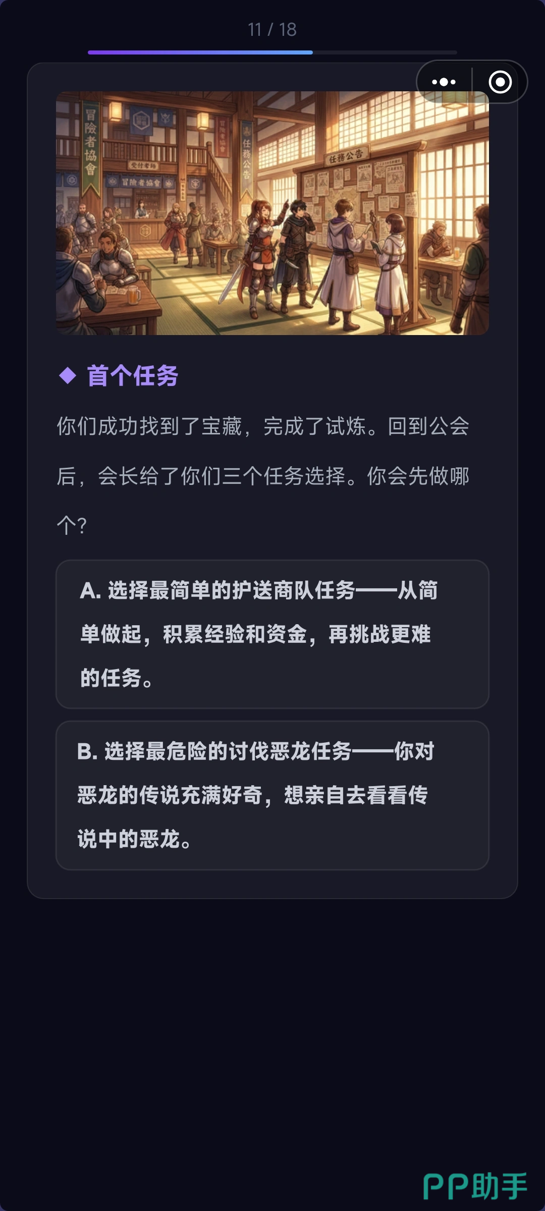 关于玩家最关注的上线节点,目前官方尚未公布具体日期,仅确认处于最终优化阶段。区别于常规问卷式测评,本作采用“剧情即测试”的交互逻辑:所有题目均以沉浸式情境呈现。例如,“穿越迷雾森林途中,发现一群衣衫褴褛的逃难村民,你会驻足援助,还是优先确保自身任务时限?”又如,“在古遗迹深处拾获无人认领的秘银宝箱,你选择独自开启,还是与同行伙伴共享收获?”整套流程无任何标号题干或选项标签,玩家在自然决策中完成人格维度采集,毫无测评负担。