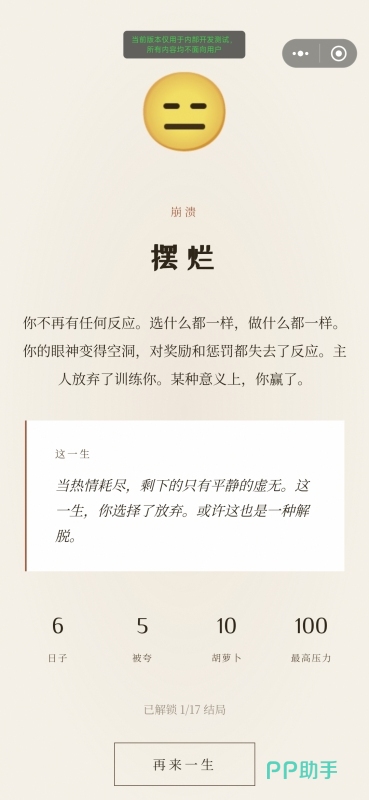 本作共设计17种逻辑自洽、彼此独立的结局,覆盖温暖治愈、荒诞脑洞、情绪隐喻等多种风格。不存在重复路径,重开即新局——无论是追求全结局收集,还是专注某条高好感线深入体验,都能获得持续的新鲜感与情感共鸣。数值变化与剧情反馈高度同步,让“点击”不止于动作,更成为情绪表达的出口。