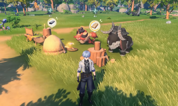 《蓝色星原旅谣》融合多维度玩法:除高强度动作对抗外,亦包含沉浸式场景探索、宠物图鉴收集、家园建造及自动化资源采集等模块。玩家可在无缝大世界中驻足观赏生态景观,邂逅形态各异的野生宠物并完成收服;已驯养宠物可指派执行日常采集任务,大幅降低重复劳动成本;同时,通过收集散落物资逐步搭建个性化家园空间,实现从冒险者到定居者的身份延伸。