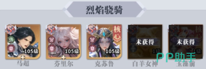 第三个阵容大家可以玩儿的是烈焰骁骑队,这个阵容里面大家可以用马超作为主要的输出核心,这套阵容里面因为用群英的角色比较多,那么后期搭配上有更多点燃状态的角色也是可以保证这个阵容里面的强度,比如说辉夜姬此类角色就可以搭配在其中带来足够的强势功能,这样造成了更多持续类型伤害效果之后还可以保证队内会有更多的引爆伤害,不过这个引爆伤害一般是在后期才可以爆发出来,前期要去加速叠加点燃状态,马超在场内如果跟同样群英阵营当中的角色一起上场的话,产生的契约,也就是羁绊效果还可以让她带来的破甲功能提升15%,所以在这里对于前排敌人造成的一个控制以及爆防能力还是比较厉害的,大家如果想要在突破前排的情况下,用马超来作为这里首要输出的角色是很不错的,另外玩这个阵容的情况下,大家就要注意场内如果有更多的神器加成效果一定要给她们搭配上,这样才可以玩儿的好这套阵容的强势能力。