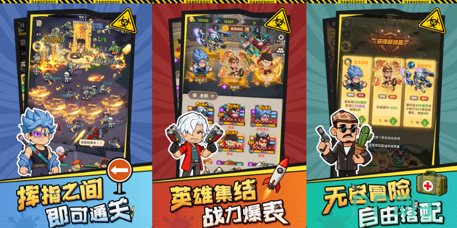 求生之城设定了一个末日大世界,面对大量丧尸入侵文明即将濒临毁灭,作为末日指挥官,玩家需要在游戏里借助各种经典中外神话角色,使用武器对抗游戏里的尸潮,游戏里每个角色使用的武器和技能都不一样,随着挑战,系统还会随机给出大量全新的技能,随着闯关,遇到的对手战力会变得更强,可以合理利用角色技能,开启绝地求生挑战。