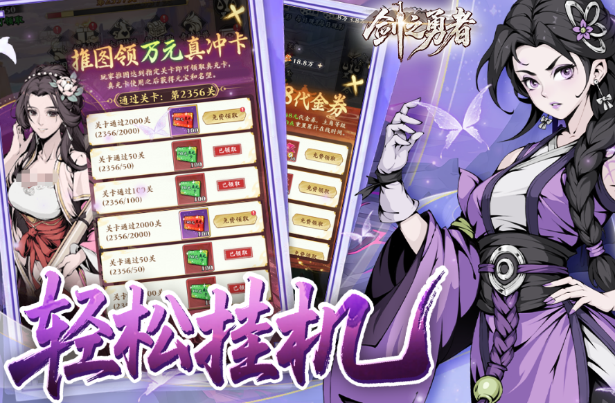 剑之勇者设置了一个国风二次元世界,在水墨风格的场景中,角色可以扮演侠客自由探索江湖,每个侠客角色都会有不同的技能特性,随着探索,大量伙伴可以加入到队伍,挑战过程中会有丰富的主线剧情,伴随主线玩家将会加入门派,参与各种经典的舞林大会,副本玩法中会有江湖奇遇设定,每个角色都会有自己的故事供玩家解锁,对战之余,系统里会有比较轻松的挂机设定,让玩家即便离线也可以获得收益。