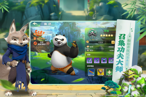 功夫熊猫作为知名的国漫,融合了大量的功夫和经典古风元素,功夫熊猫神龙大侠,会让玩家变身成为里面的经典角色,利用角色的能力对抗邪恶势力,挑战开启之后,玩家可以先完成基础的场景建设,招募大量原作角色,接着利用角色的能力组成队伍,挑战邪恶势力,每次对战角色会自行释放招式战斗,要想获得胜利,玩家必须要多去选择几个强力成员,确保战力可以压制对方。