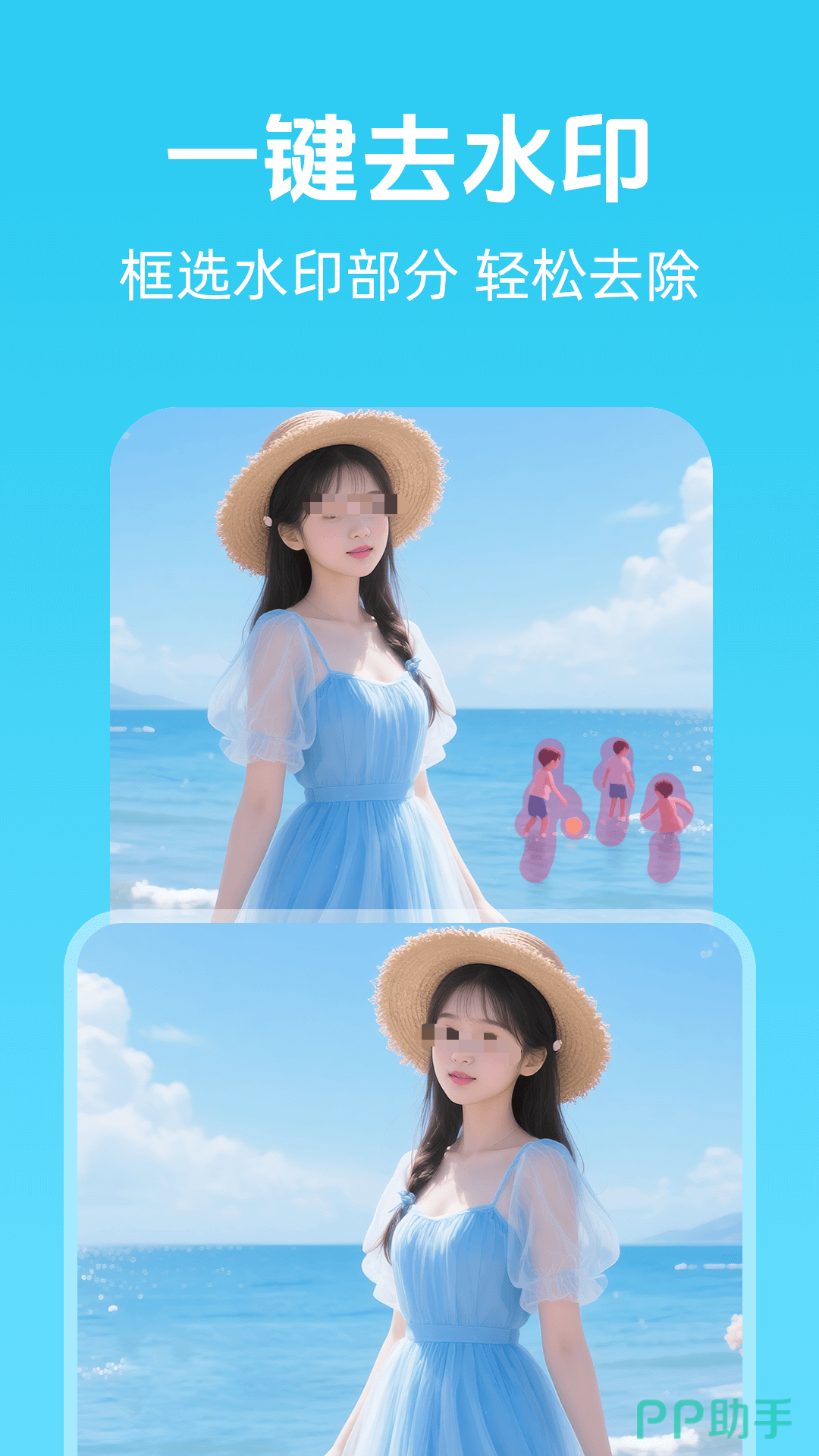 很多小伙伴们平时在微博或者是一些社交软件上保存的图片留有水印,发布到个人的社交圈或者朋友圈都不方便,非常难看,那么就可以试试去这一款,能够直接帮助大家将水印毫无违和的P掉,而且操作简单,手指涂抹即可。