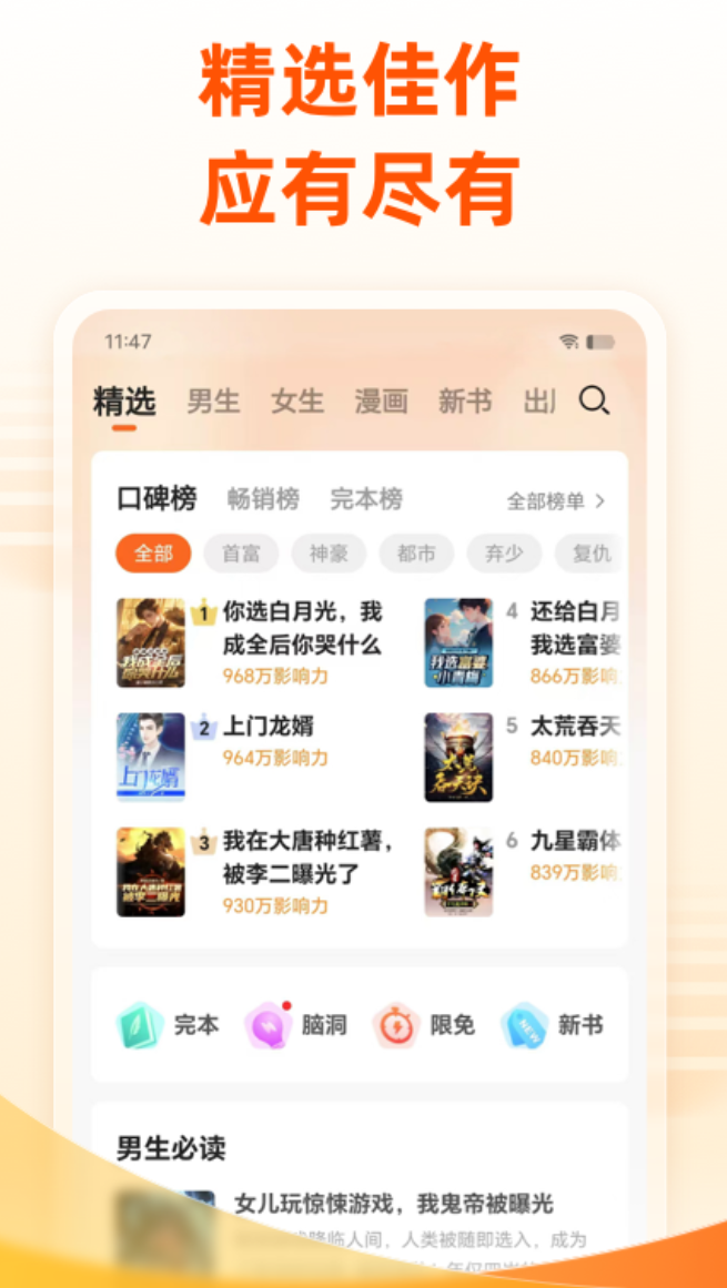 腾讯生态支撑下的内容储备达到千万级别,入驻作者规模同样庞大。平台覆盖了网络文学到出版图书的全品类内容,斗破苍穹、遮天这类头部网文IP和琅琊榜、鬼吹灯的影视原著都能找到,经管历史科技类书籍补充了阅读的深度和广度。界面设计追求简洁实用,排版清晰舒适,阅读参数可以精细调整,护眼和夜间模式的切换方便。