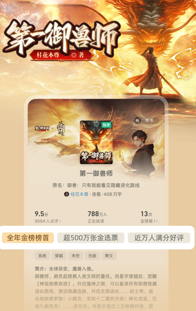 十四年原创文学平台积累的书库达到40万部规模,签约作者超过3万人支撑起每日3700万字的更新量。武神天下、唐寅在异界这类长篇连载一直保持热度,平台还拓展了杂志漫画和有声读物的内容形式。阅读界面保持简约风格,主流电子书格式都能直接导入使用,字体背景可以根据个人习惯自由调节。