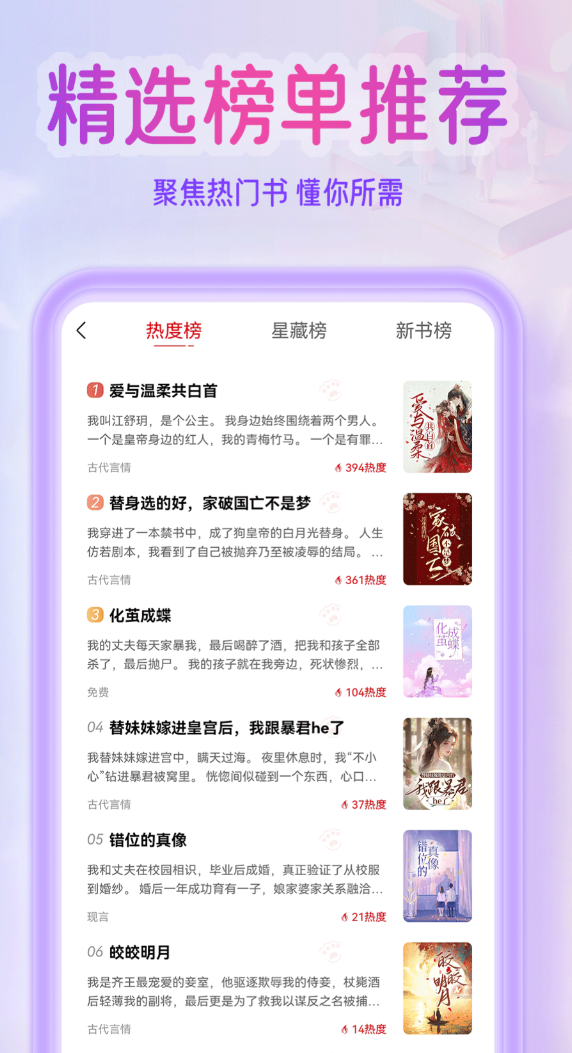 轻量化设计让软件运行流畅不卡顿,数十万部小说按题材,热度,字数等维度分类筛选。热门新作每日更新,连载进度与作者同步,榜单推荐提高了发现好书的效率。界面去除了冗余元素和弹窗广告,阅读参数支持深度自定义,护眼和夜间模式保护视力,智能排版优化了文字显示效果。章节导航便捷,阅读进度自动记录,关闭可以能快速回到上次位置。
