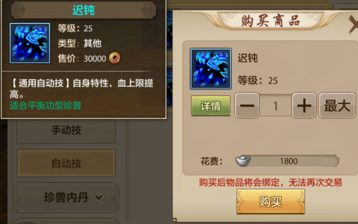 珍兽的技能分为手动技能和自动技能,手动是玩家操作使用的,而自动技能是珍兽自动释放,要分来开介绍。