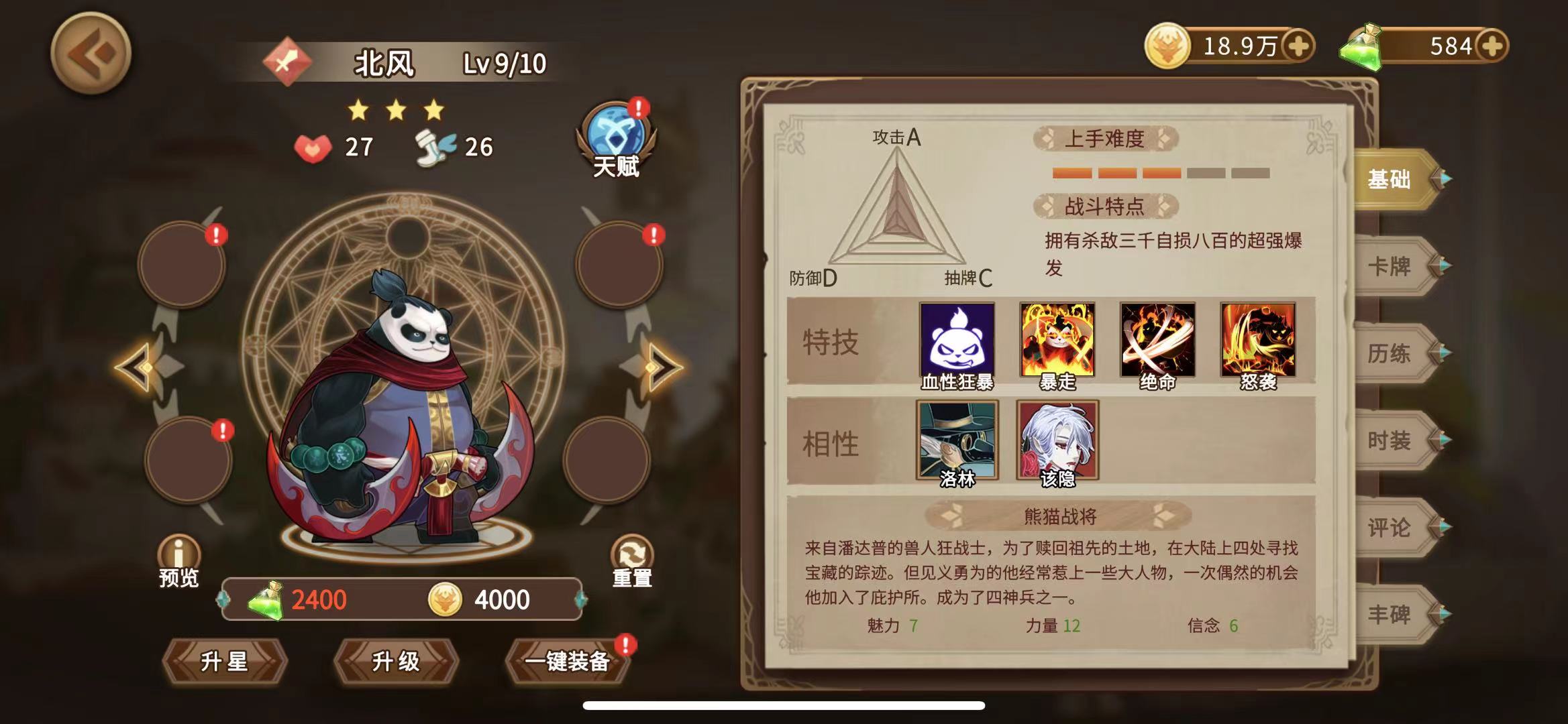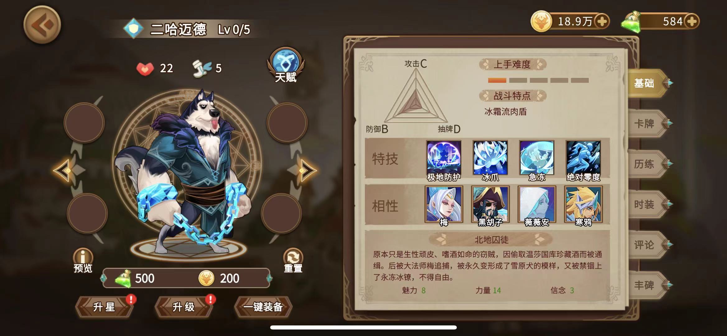 4、紫色英雄二哈迈得,职业肉盾,战斗特点战斗中可以增加队友防御以及对目标造成冰霜效果。