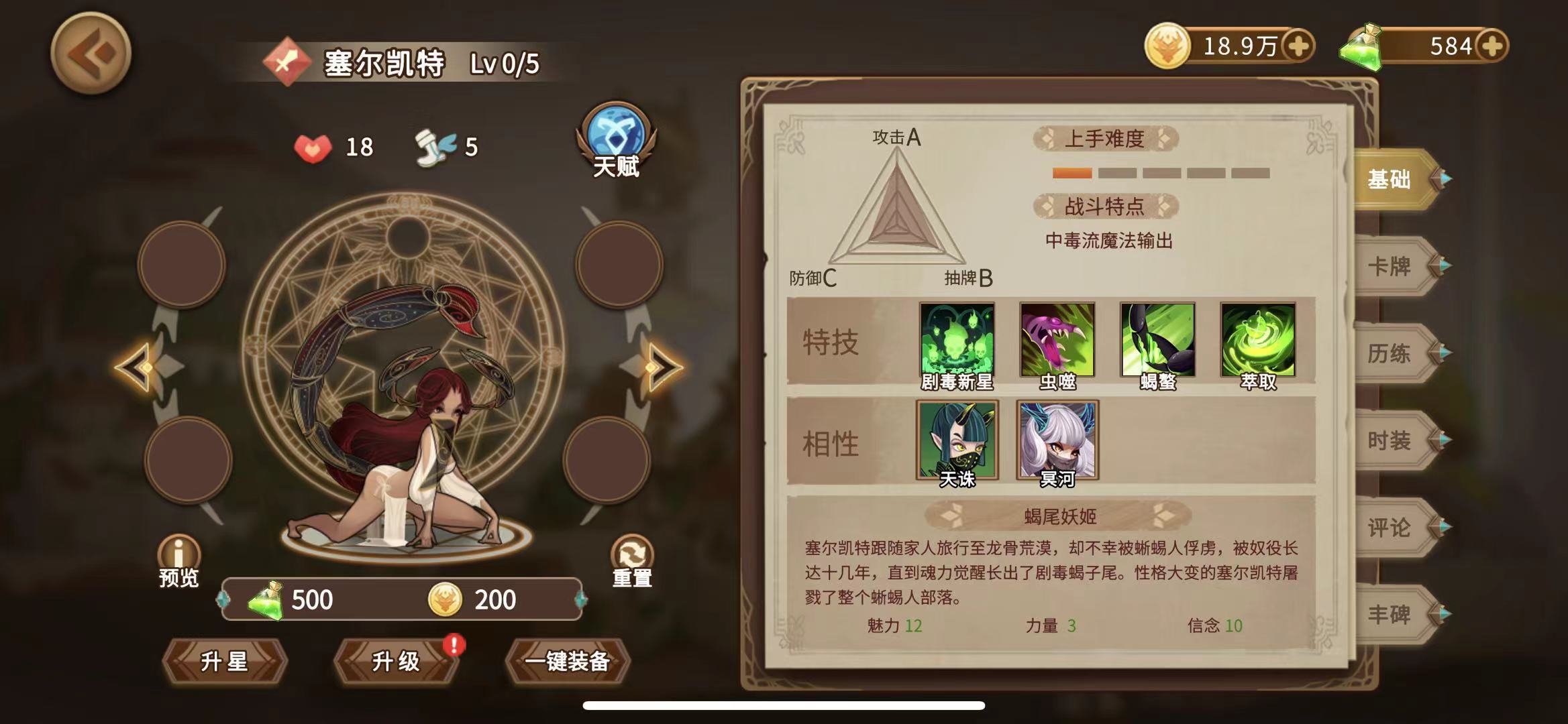 3、紫色英雄塞尔凯特,职业魔法师,战斗特点可以通过技能伤害目标以及对目标造成中毒效果。