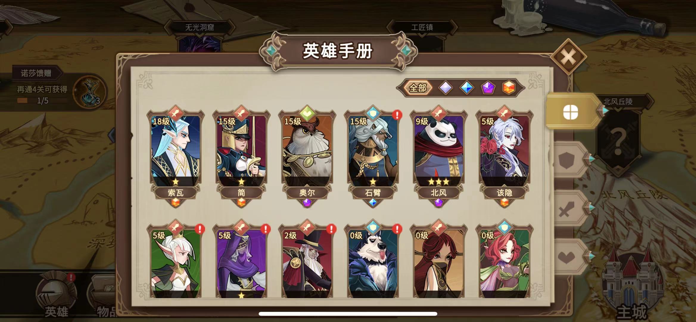 1、紫色英雄北风,职业战士,战斗特点可以爆发超强的暴击攻击目标。