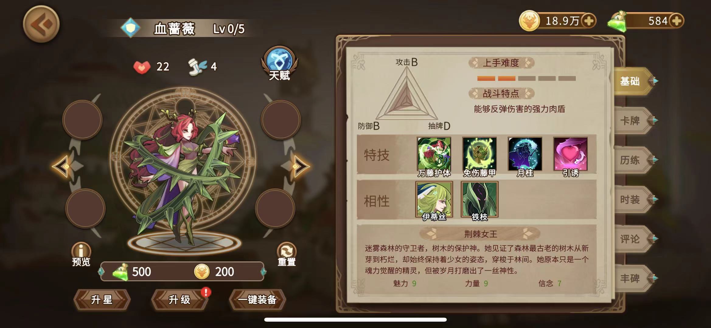 6、紫色英雄血蔷薇,职业肉盾,战斗特点通过回合中增加自身护甲以及对自身增加反伤护甲。