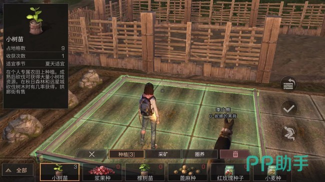 第二步:准备好需要种植的植物种子。种子的获取,有三种方式。一是到野外采集,比如小编去秋日森林砍树就会采集到小树苗;二是通过活动获取的,比如圣诞节系统就送了几颗冷杉树苗,还有完成生存手册野外生存部分也会送浆果种子;最后一种就是购买啦!拱廊街商城的【庄园种植】或者营地金库商人夏冬凉那里都可以购买。