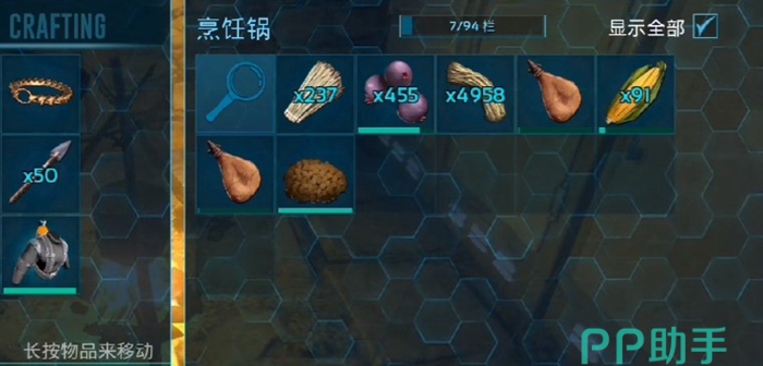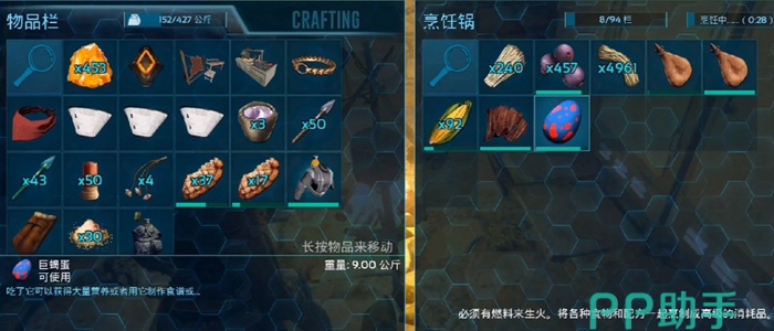 霸王龙最爱吃的饲料就是巨蝎蛋饲料了,制作巨蝎蛋饲料需要在烹饪锅中放置1个满装的水袋+2个紫色的浆果+1个巨蝎蛋+1个玉米+1个优质的熟肉干+3个纤维。优质熟肉干就是优质生肉烤熟之后再晒干获取。巨蝎蛋就是巨型蝎子下的蛋,如果大家的家里有雌性的蝎子那么就很容易获得,否则我们需要去找巨蝎的巢穴。
