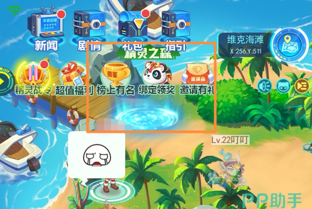 没有水系徽章的玩家也可以从[维克海滩]进入,[精灵之森]就在维克餐厅的左上角位置,就是小编在下图中圈起来的这个地方。