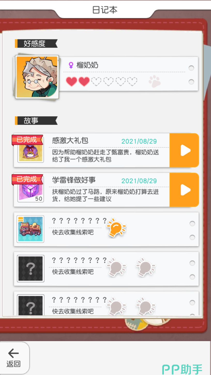 首先我们要找到榴奶奶并与她对话,榴奶奶的位置就在街区中,一般情况下榴奶奶都会在最下面的马路周围闲逛,小伙伴们可以多去找找。和榴奶奶对话之后就能开启她的好感度任务了,第一个好感度任务完成之后我们和街区中所有的人物都对话一次,之后我们就能开启送榴奶奶过马路的任务了,任务的线索可以从街区中其他人物的口中得知。