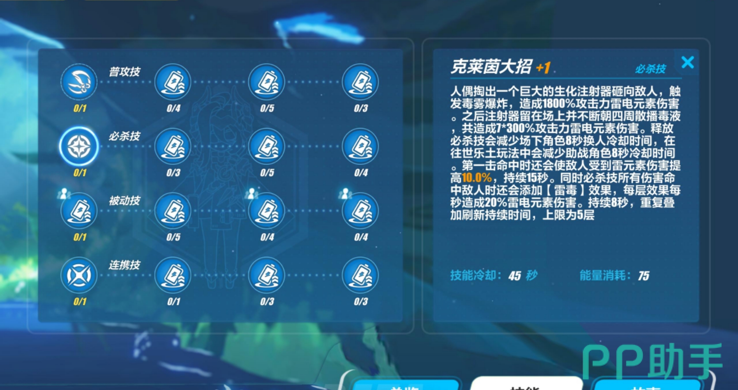 克莱茵的普攻技能:是新的需求吗,在战斗时向敌方发射针筒或者生化雷电,会对敌人造成多段雷电元素的伤害。