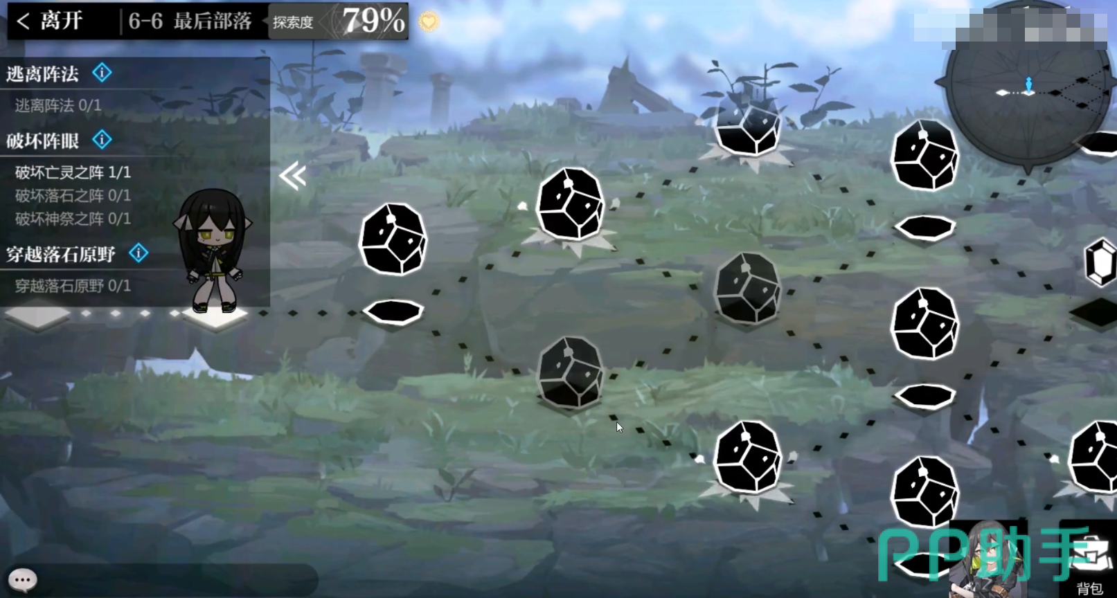 要完成6-6最后部落这个关卡,需要逃离阵法,又分为了分别破坏三个部分,亡灵之阵,落石之阵,神祭之阵,破坏了三个阵法后,再穿越最后的节点,即可完成关卡。