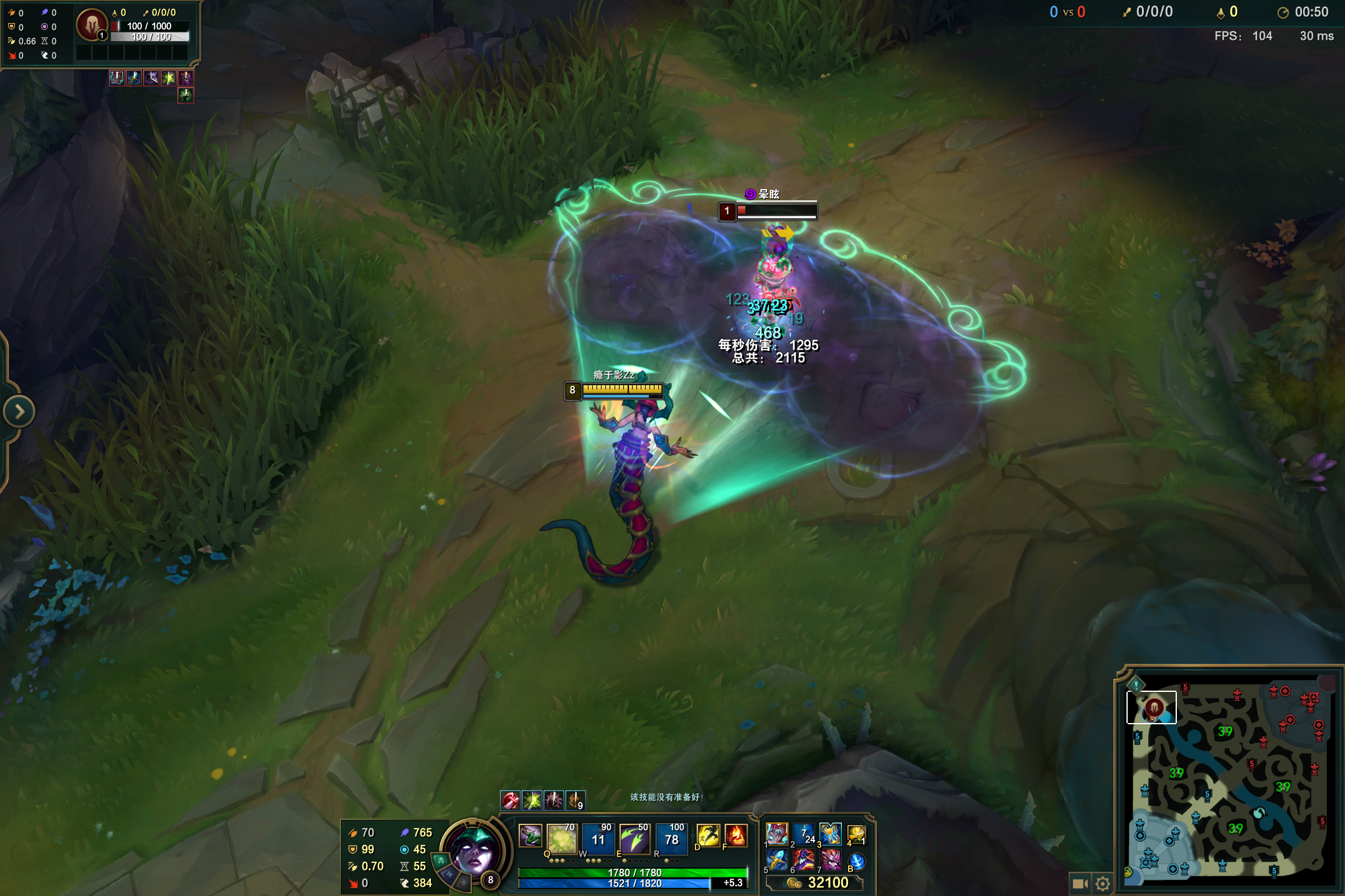 对线上,我们尽量在Q到人之后施加一个中毒的效果,这样再追着使用E技能,这样我们的E技能将会有着额外的伤害效果,再衔接大招石化和缚地据可以完成击杀了。打团的时候,蛇女的打坦克能力是非常出众的,所以我们利用缚地优先击杀前排,之后再R闪现对后排进行输出。