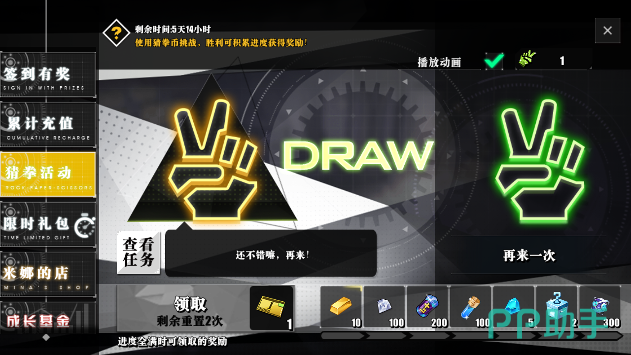 总的来说该玩法是获得一些额外奖励的,利用好的话还是不错的。本次的时逆猜拳活动怎么玩内容就是这多了,希望可以帮助到大家。