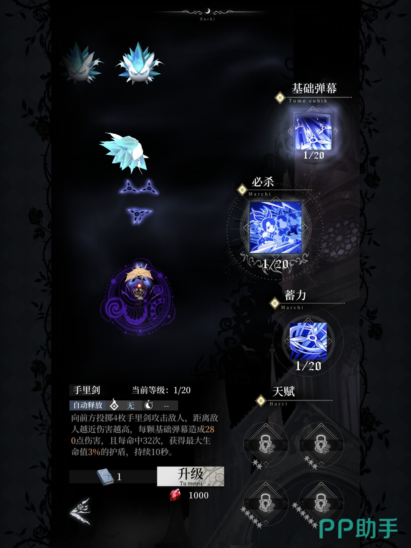 蓄力技能和基础弹幕并没有什么特殊的地方,但是她每次造成伤害之后,还会给自己回复护盾,相比于爆裂之音的消费精力数量,她的持久作战能力还是很强的,培养到五星之后就可以在召唤分身的时候,附带清除弹幕效果,还是很值得培养的一个后期魔女。