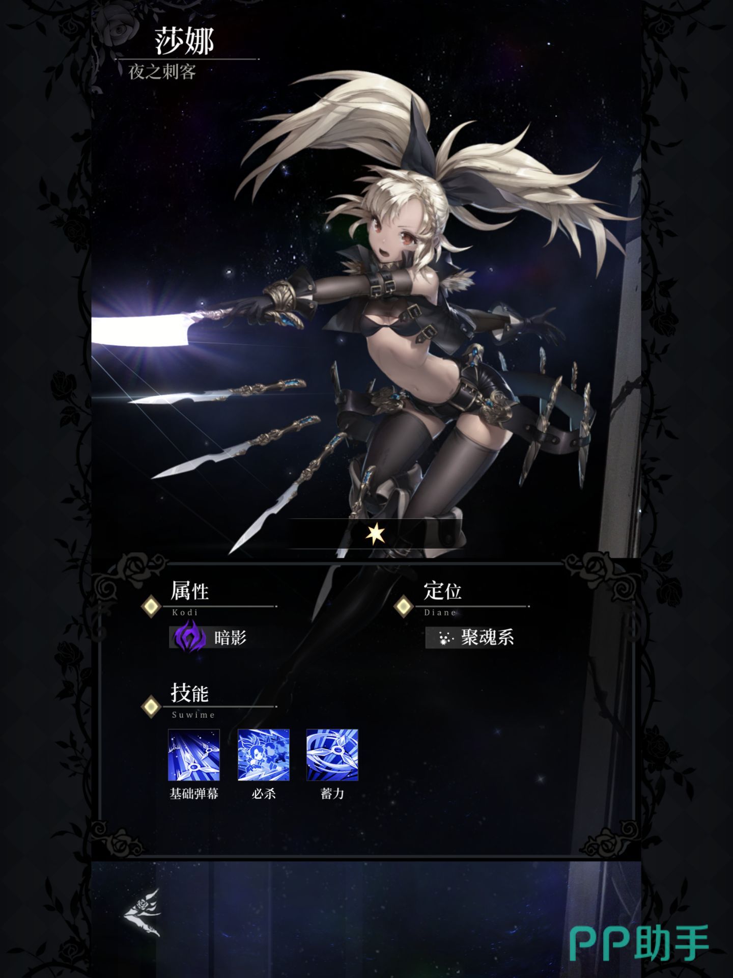 莎娜就是一个典型的r级别魔女,在游戏中的弹幕发射方式为聚魂系列,属于单体爆发比较高,并且近战输出比较厉害,属于一个高风险,高伤害的夜之刺客,跟爆裂之音比较是没法比的,但是奈何她的培养材料比较容易获得,还是比较简单,后期肯定最强,但是前期培养的过程中,不建议用它战斗,10%的减伤,挂到哪里都是收益,培养到sr级别之后,大招输出基本上就是天花板了。