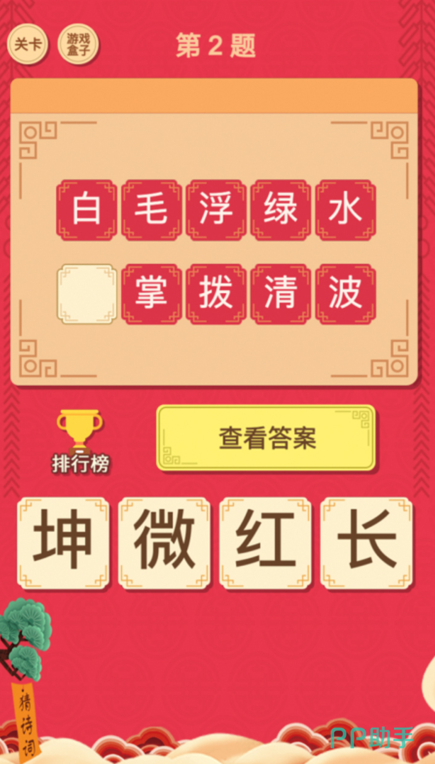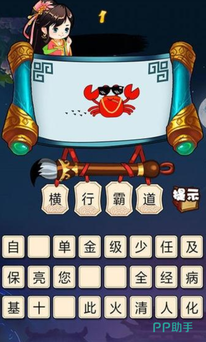 玩家可以根据提示猜出方块里缺少的字,能学到古诗词和名人名言等知识,对于小朋友来说,在不知不觉中就能学到不懂的文字,适合父母带着孩子一起学。