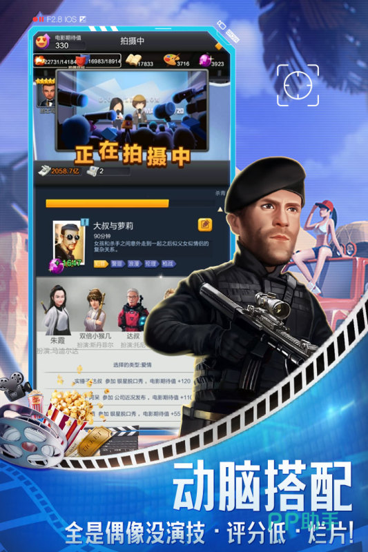 票房大卖王是一款2018年上线的,模拟电影拍摄的一款手游。在票房大卖王中大家可以招募自己喜欢的国际巨星,然后通过在训练室训练他让他的演技更突出,能力更全面,再通过迎合市场的品味,征服评论家,让自己的电影票房大卖。