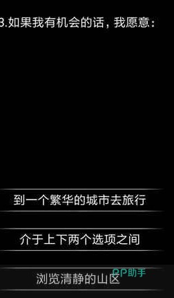 你了解自己吗是一款文字mud人格测试游戏,我们在你了解自己吗游戏中只需要按照顺序回答系统问出的问题之后就可以对我们的人格进行解析。当然了,世界是复杂的,游戏中的选择也不是非黑即白,大家根据直觉进行选择,解析出来的结果也是仅供参考。