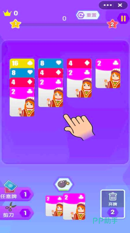 一款十分休闲有趣的纸牌游戏,这款游戏最大的亮点就在于将普通的空心接龙与2048游戏模式相互结合,可以合成纸牌,达到相应分数时便可通关。游戏流程短,一两分钟就可以过关,还有多种道具助力游戏胜利。