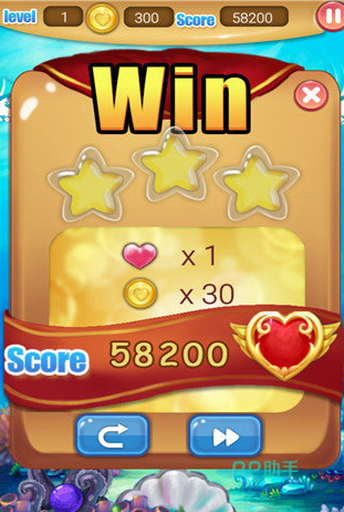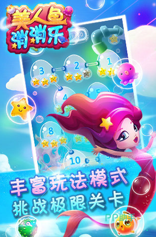 Q萌可爱的游戏画风,动感十足的画面搭配着可爱的小美人鱼,她将在美人鱼消消乐这个游戏中,陪你通过重重关卡。