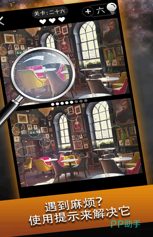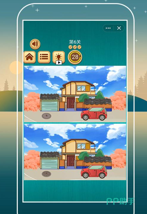 在游戏中会有无数个关卡等待玩家们的挑战,玩家需要在指定的时间找到对应的3个不同之处,找不到的玩家还可以进行帮助提示,但用过提示以后就不可以再用了。