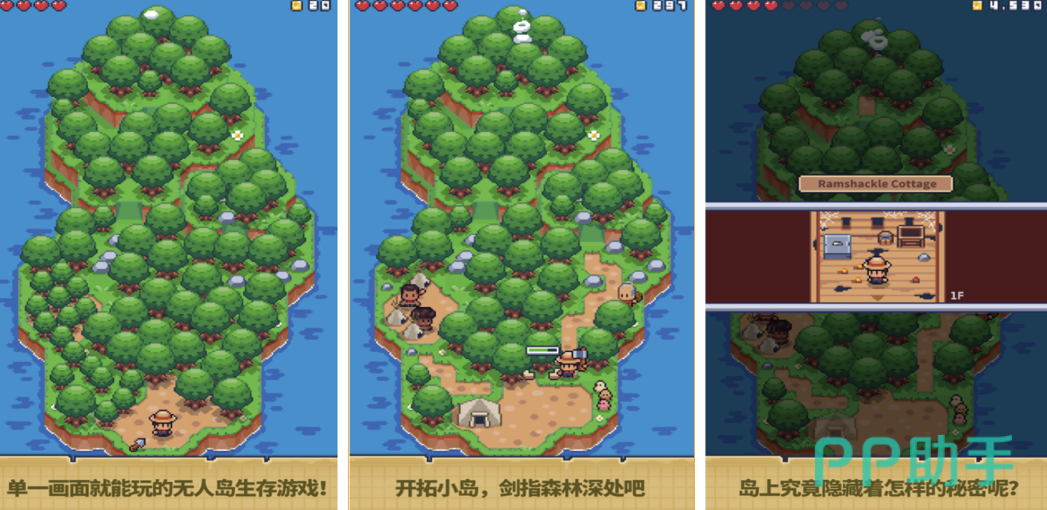 在一个无人的岛上边隐藏着怎么样的秘密呢?简约却不简单的沉浸要素收集素材,玩家需要通过升级武器跟道具去帮助自己对抗凶恶的逆袭,求生的同时还要填饱肚子保持身体的能量,这么艰辛的挑战你能胜任吗?加油吧少年。