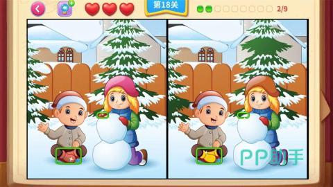 看图找不同这是一款经典益智找不同游戏,游戏关卡丰富,含有多达一千道关卡。游戏中没有规定时间,玩家们需要在两张精美的图片中找出九处不同的地方。
