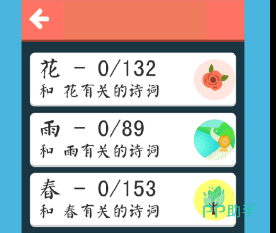 该游戏从三千古诗词中进行精选,按照不同的主题分类的形式展示不同古诗词,让玩家体验到不同的古诗的同时也感受到不同文化之美,老少皆宜的一款游戏。