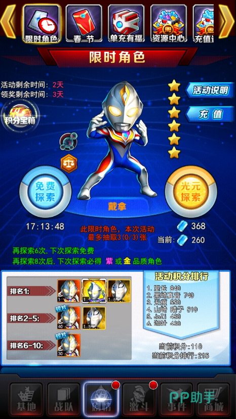本款游戏当中将登场大量传奇奥特曼,这些传说当中的奥特曼不仅战斗力强大,玩家们还可以直接通过游戏召唤来获取。游戏内还有丰富的任务系统等待着大家去了解,赶紧行动起来。