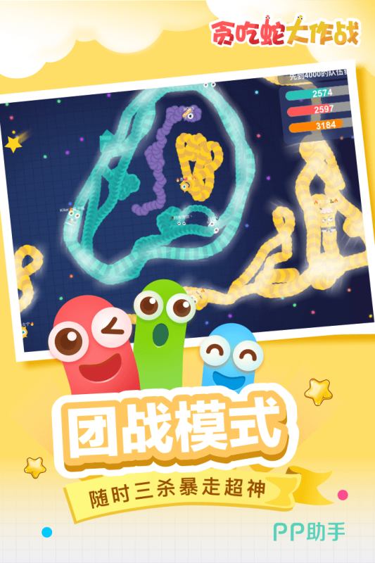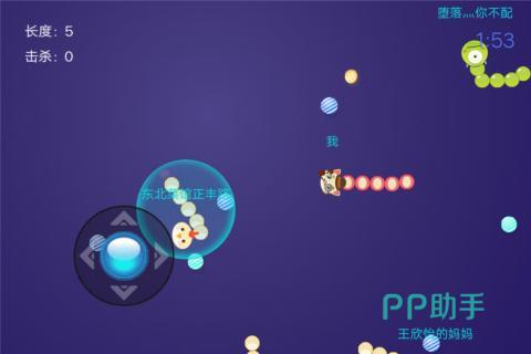 百变贪吃蛇是一款大型的竞技休闲游戏,在这个游戏当中玩家需要驾驶一条带有萌宠头像的长蛇,运用屏幕上的摇杆来控制小蛇的走位,保证小蛇吃掉屏幕上的更多彩色小圆球,同时用计让其他的贪吃蛇撞到自己的身上,这样的话屏幕上就会多很多的小圆点也能成为玩家的食物。
