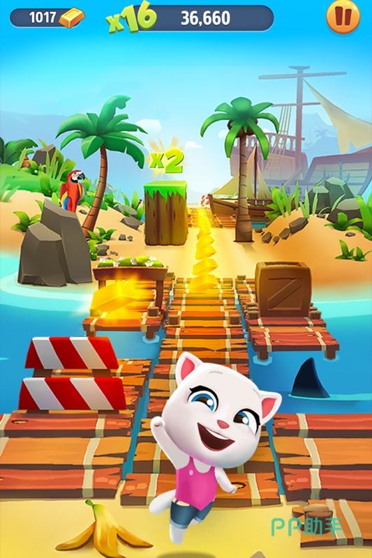 汤姆猫跑酷是一款以会说话的汤姆猫为原型的跑酷游戏,在这款游戏当中玩家需要进行强盗追击,并在路上不断的获得金币,通过左右移动的方式将道路上的金块全部捡起,之后用来建设家园。