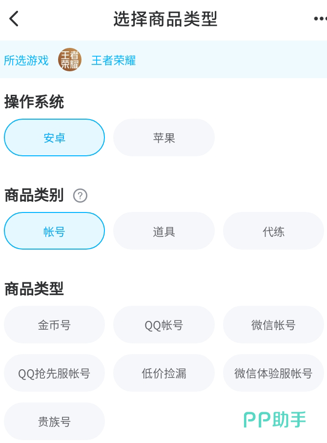 以游戏王者荣耀为例,交易猫里面能够选择的账号功能是非常多的。不仅可以选择操作系统,交易猫还对每个游戏的道具进行了细致划分。比如玩家大部分都需要金币账号或者铭文账号,交易猫就针对这一块提供筛选功能。