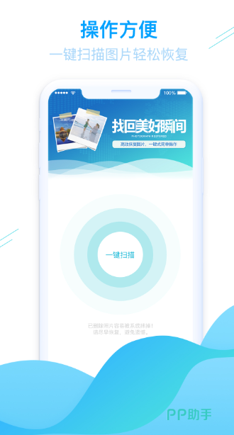 在这个快速发展的时代,记录孩子的成长、美丽的风景、家人朋友之间的聚会和美味的食物都会想要用照片留存下来,如果一不小心把照片删除,会觉得非常的可惜,这款手机照片恢复软件,就是帮助用户找回丢失的图片,而且只需要简单的扫描就能恢复,有需要的用户快来下载吧。