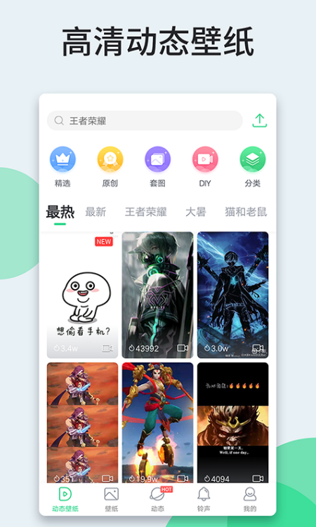 壁纸大全这款app里面包含了市面上所有种类的壁纸,简直就是壁纸爱好者们的天堂,不管小伙伴们喜欢的是明星、宠物、动漫还是网红和游戏或者是影视人物,在这款app里面都可以找到自己想要的那一款壁纸,而且这款app最近还上新了一铃声的功能,更是获得了小伙伴们一众的好评呢。