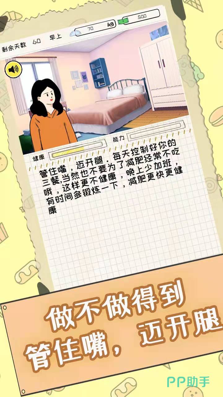 当一名吃货想要改变自己,当一名吃货的梦想竟然是成为肌肉男,那么为了实现愿望,这个吃货应该怎么做呢?从嘴上的各类零食,变成手上的健身器材,当薯条变成哑铃,这场游戏就开始了。玩家可以,看到吃货身上的肉在一点点减掉,取而代之的是肌肉,能带来超强的成就感。