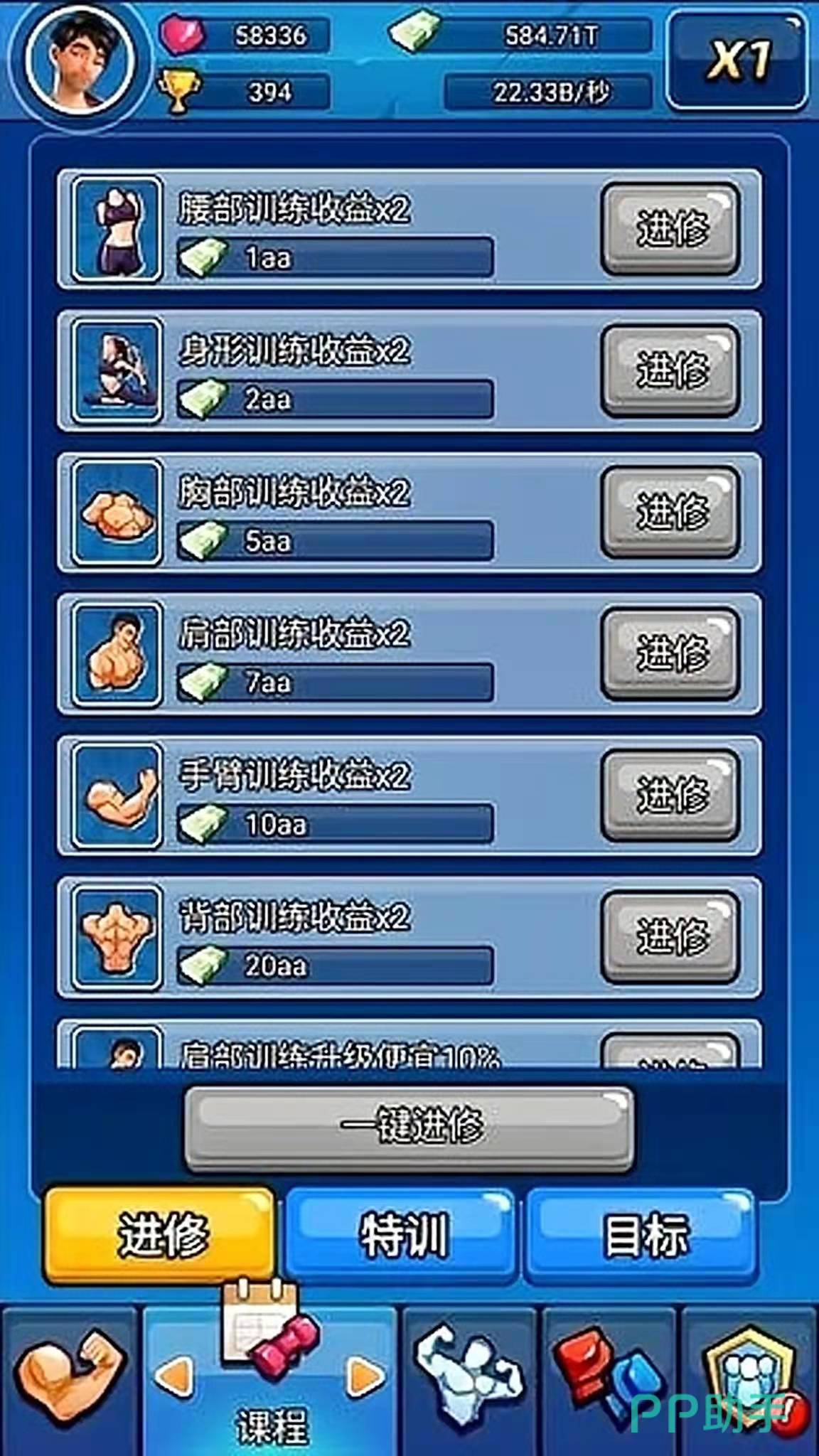 游戏是一款休闲放置类手游,游戏的故事讲述的是,一名开着健身房的女老板,因为经营不当,导致健身房倒闭后,玩家操控的角色,因为各种抓马的原因,“不小心”成为了健身房的老板,现在你要做的就是,锻炼肌肉,经营店铺,成为肌肉男,迎娶女老板。