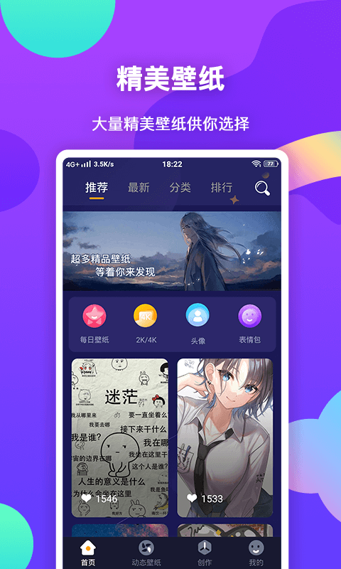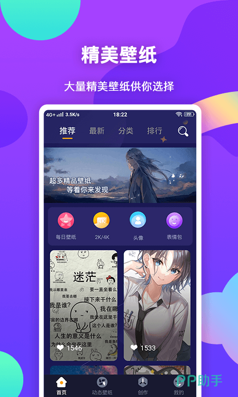 这是一款手机桌面壁纸主题的APP,小伙伴可以直接使用这款APP内置的精美图片设置自己的手机桌面,以及各种社交软件的头像哦!
